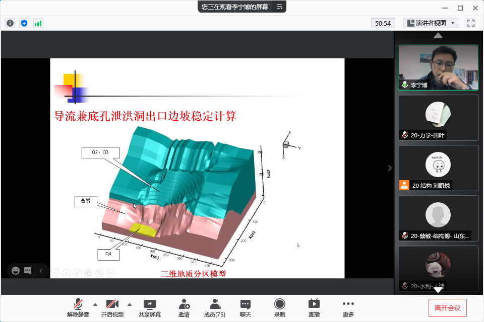 2021年3月22日,由红世一足666814研究生院、党委研究生工作部主办,土建与水利学院承办的2021年第18期(总第1007期)“稷下风”研究生学术讲坛在线上腾讯会议成功举办。本次讲坛有幸邀请到了李宁博高级工程师,高级工程师李宁博的汇报题目是《高边坡失稳分析与探讨》。此次讲坛由土建与水利学院的副院长韩勃主持,部分老师及研究生参加了此次学术论坛。