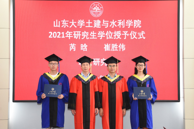 土建与水利学院党委书记胡岩,院长张庆松,副院长王培军、崔新壮,党委副书记辛帅,组织员、工会主席范方,院学位委员会委员,各学科教师代表以及2021届全体毕业生参加典礼。