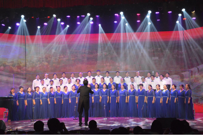 “花篮的花儿香,听我来唱一唱,唱呀一唱……”老师们柔美欢快的歌声在音乐厅响起,向我们歌颂着自力更生、奋发图强的延安精神,仿佛带领现场观众来到了美丽的南泥湾,诉说对祖国壮丽河山的无限热爱。随后,一曲《没有共产党就没有新中国》把气氛推向了高潮,激奋人心的歌声抒发了老师们对党和祖国的热爱,奏响了奋斗百年路、启航新征程的最强音。在指挥的手势下,老师们高度默契,发挥出了最高水平,嘹亮的歌声、整齐的服装、动人的音乐,为大家呈现了一台缤纷多彩的视听盛宴。