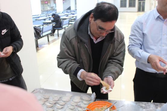 下午18:30,活动正式开始。全体教师学生齐聚一堂,各展才艺,互助教学,展现各地迥异的包水饺技巧。做饭达人现场展现擀皮绝活儿和包饺子绝活儿。有些不太熟练的同学也在老师和同学的指导下逐渐掌握包水饺这一技能。大家学的高兴,包的开心。活动现场热闹非凡,其乐融融。应景的背景音乐《包饺子》把活动气氛推向高潮。